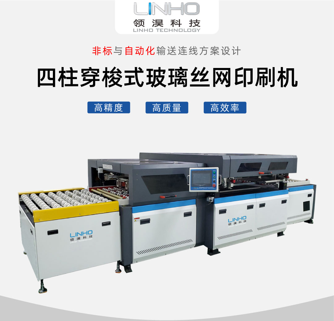 产品描述:四柱穿梭式玻璃丝网印刷机采用四柱结构,具有稳定性强、精度高的特点。适用于玻璃行业,能高效实现多层次、精细的丝网印刷,广泛应用于建筑玻璃、家电玻璃、汽车玻璃等领域。